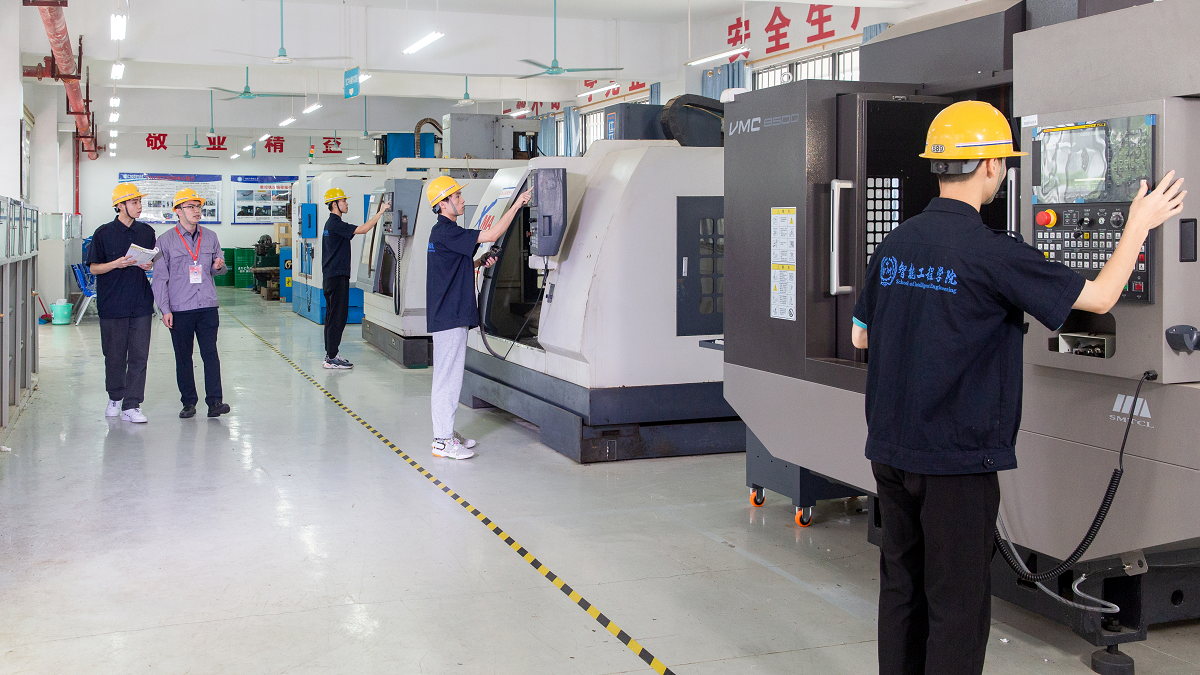 CNC加工实训中心、工业机器人实训室、模具实训室,满足学生对实验(实训)项目的教学、职业技能等级证书、学科技能竞赛培训的需要。