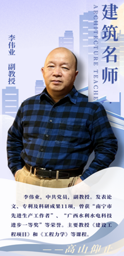 李伟业,中共党员,副教授。发表论文、专利及科研成果11项,曾获“南宁市先进生产工作者”“广西水利水电科技进步奖一等奖”等荣誉。主要教授《建设工程施工技术》《BIM技术应用》等课程,深耕智能建造实践教学研究。
