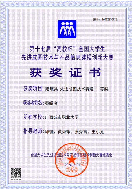 智能建造工程专业注重学生职业技能和职业素质的培养。鼓励学生积极参与各类行业企业的专业竞赛。促进学生掌握各项专业的基本技能,夯实专业能力。以下为部分获奖证书: